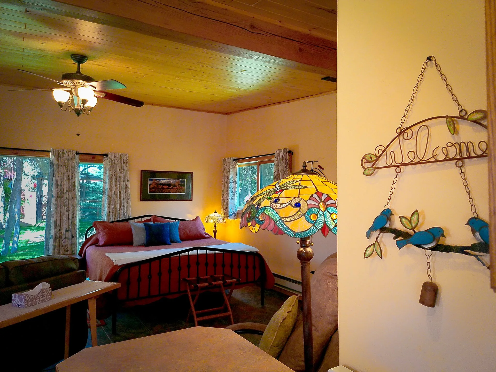 The Casita Suites are beautifully decorated private luxury suites; each featuring a full bathroom with bathtub and shower, full kitchen with dining area, small living area with a fireplace, couch and coffee table. All the suites feature two separate entrances into the suite, one with easy access to parking, and the other a sliding glass door opening into a private patio overlooking the beautiful gardens and giving access to the outdoor patio and dining area. Wireless internet, coffee and tea are complimentary for our guests.